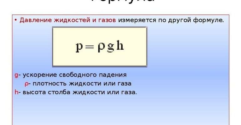 Термодинамическая величина зависит от силы, воздействующей на площадь поверхности. Для расчёта применяется формула давления газа, воды, твёрдого тела (Р