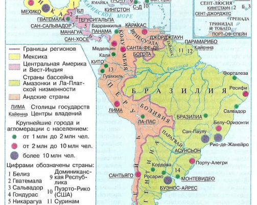 Латинская Америка это группа американских государств, находящихся на материке Южная Америка, расположенном между Тихим и Атлантическим океанами.