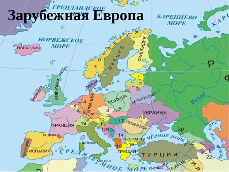 Характеристики физической карты Зарубежной Европы: