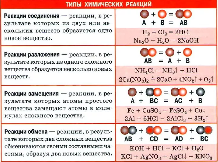 Виды реакций по числу и составу реагирующих и образующих веществ