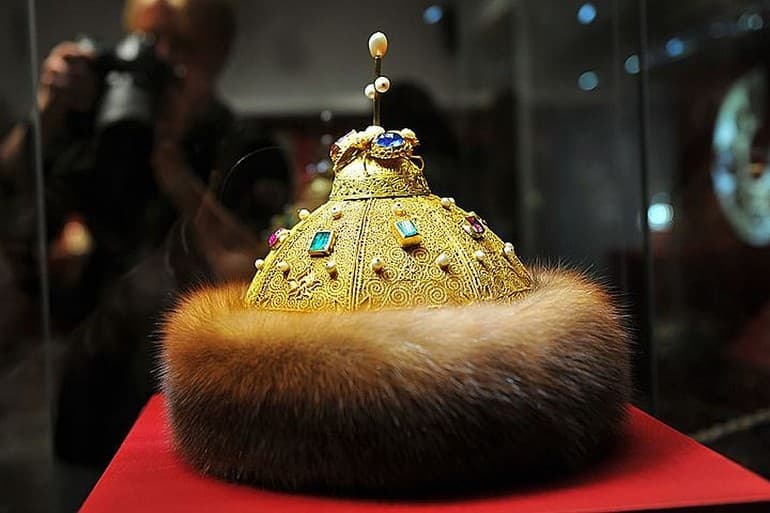 Среди царских регалий, которые находятся в Оружейной палате Кремля, таких как держава, скипетр, бармы, меч и короны, венец великих Московских князей считается древнейшим. Первое письменное сообщение о шапке Мономаха, а так звучит его официальное название, восходит ко времени правления Ивана Даниловича Калиты. Упоминание в его завещании от 1342 г. драгоценного головного убора учёные связывают с этим символом власти.