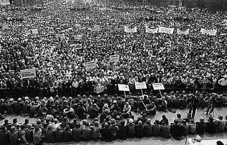 Самая многочисленная группа стала ходить по другим цехам и агитировать за то, чтобы начать забастовку. Так зародился массовый стихийный митинг. Стали подтягиваться остальные, побросав рабочие места, приходили даже с соседних предприятий, услышав гудок. Уже к полудню численность демонстрантов достигла 5000 человек. Они вышли на площадь, которая уже не вмещала всех возмущенных.