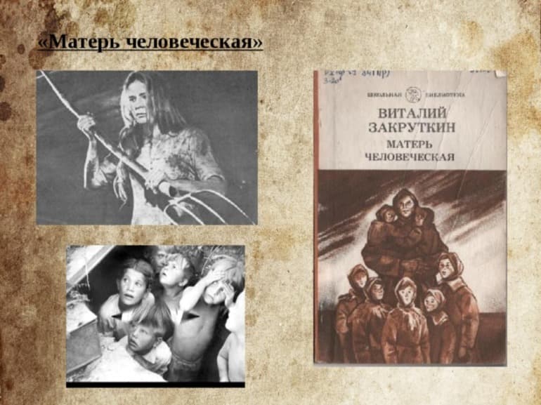 Именно она и стала прототипом главной героини небольшого рассказа под названием «О живом и мертвом», который опубликовали в 1944. Когда закончилась война, писатель поехал в Прикарпатье. В одном из храмов он увидел статую Мадонны с младенцем на руках. Тогда в его голову пришла идея о создании повести «Матерь человеческая». Закруткин написал ее в 1969 году.