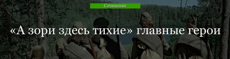 В произведении Васильева “А зори здесь тихие” герои – вчерашние выпускницы, совсем неопытные “вояки”, командует которыми молодой старшина.