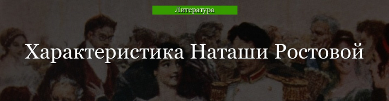 В романе Л. Н. Толстого «Война и мир» центральным женским персонажем является Наташа Ростова — молодая дворянка, наделённая всеми качествами, которые писатель