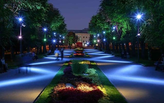 Освещать – значит сделать светлым, направить свет или же изложить, истолковать что-либо. Пишется через букву “е” в середине глагола (связано