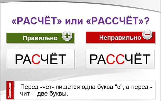 Слово «расчет» правильно пишется с одной буквой «с». Чтобы понять, как правильно пишется «расчет» или «рассчет», с одной буквой «с» или