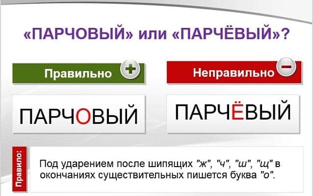 Слово «парчовый» пишется с буквой «о» после шипящего согласного. Слово «парчовый» обозначает признак предмета и отвечает на вопрос: какой?