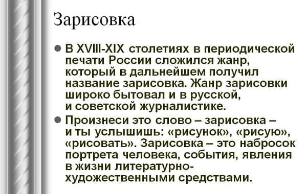 Безударный гласный «и» в слове «зарисовка» является непроверяемым. Если поставить ударение в слове «зарисовка», то узнаем, что