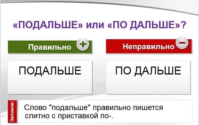 Слово «подальше» пишется слитно с приставкой по- как неизменяемая форма наречия. Выясним, почему слово «подальше» пишется слитно, а не