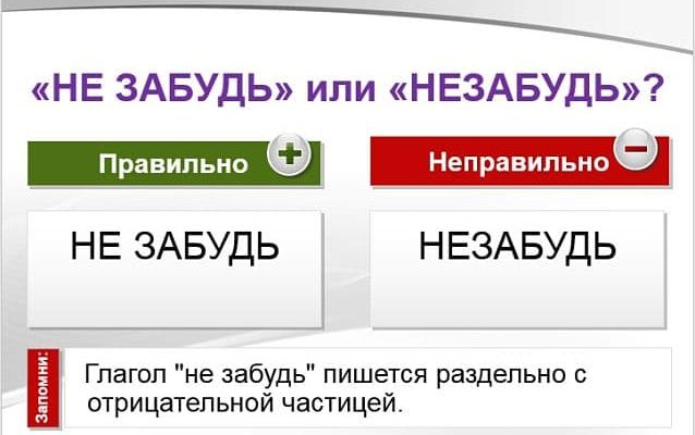 Глагол «не забудь» пишется раздельно с отрицательной частицей. Часть речи слова «не забудь» Чтобы понять, как правильно писать слово «не забудь»