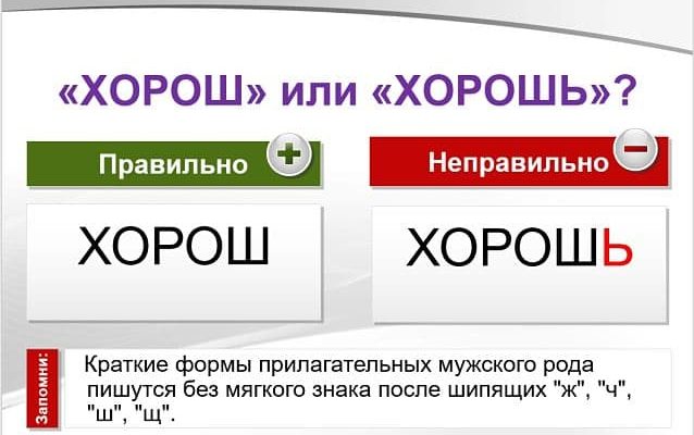 Слово «хорош» пишется без мягкого знака после шипящего как краткая форма прилагательного «хороший» согласно правилу орфографии.