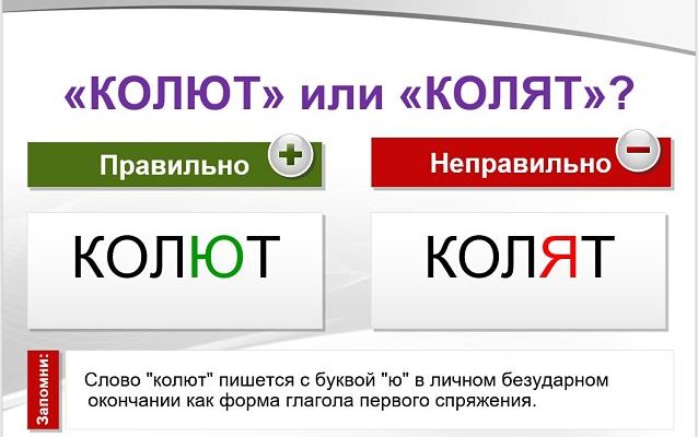 Слово «колют» правильно пишется с буквой «ю» в безударном личном окончании как форма глагола «колоть» первого спряжения.