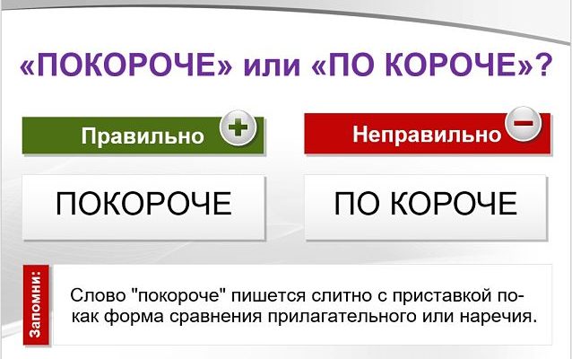 Слово «покороче» пишется слитно с приставкой по- как сравнительная степень имени прилагательного «короткий» или однокоренного наречия «коротко».