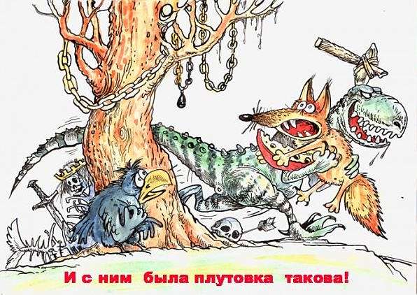 В русской народной сказке хитрая лиса-плуто́вка ловко обманула глупого серого волка.